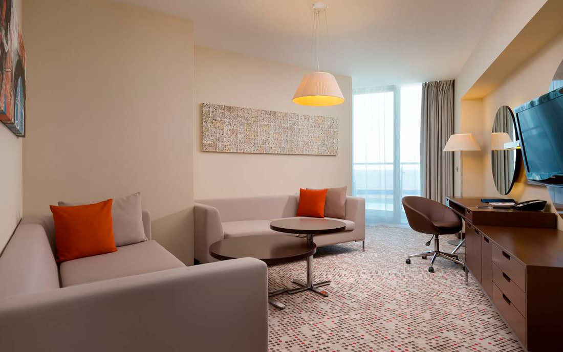 Особенность этих номеров в наличии джакузи прямо в спальне и шикарном виде на морское побережье.