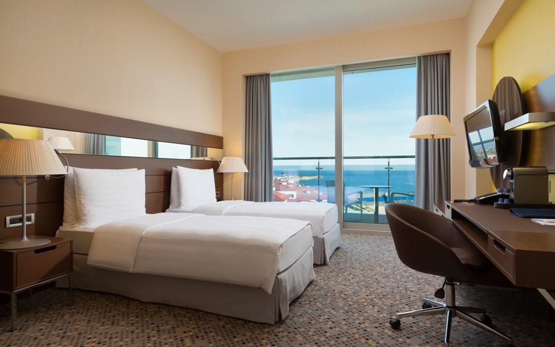 Такие номера располагаются на высоком этаже и имеют вид на море. Общая площадь — 32 кв.м.